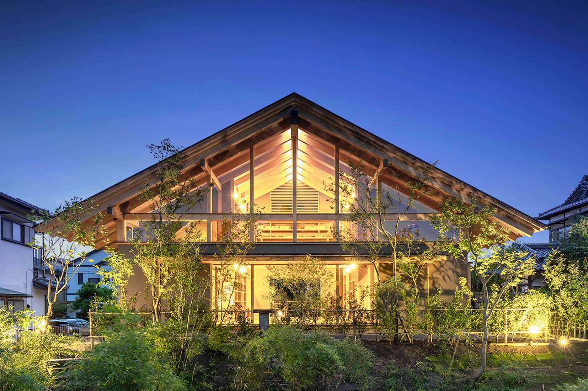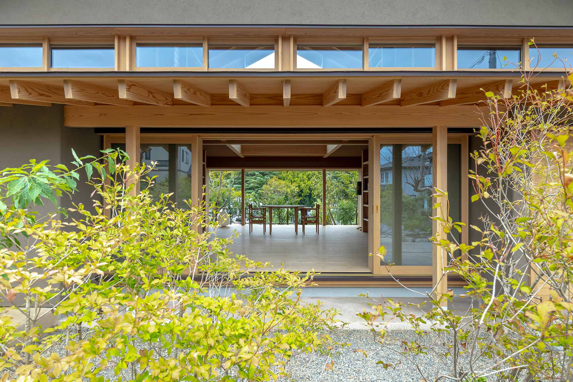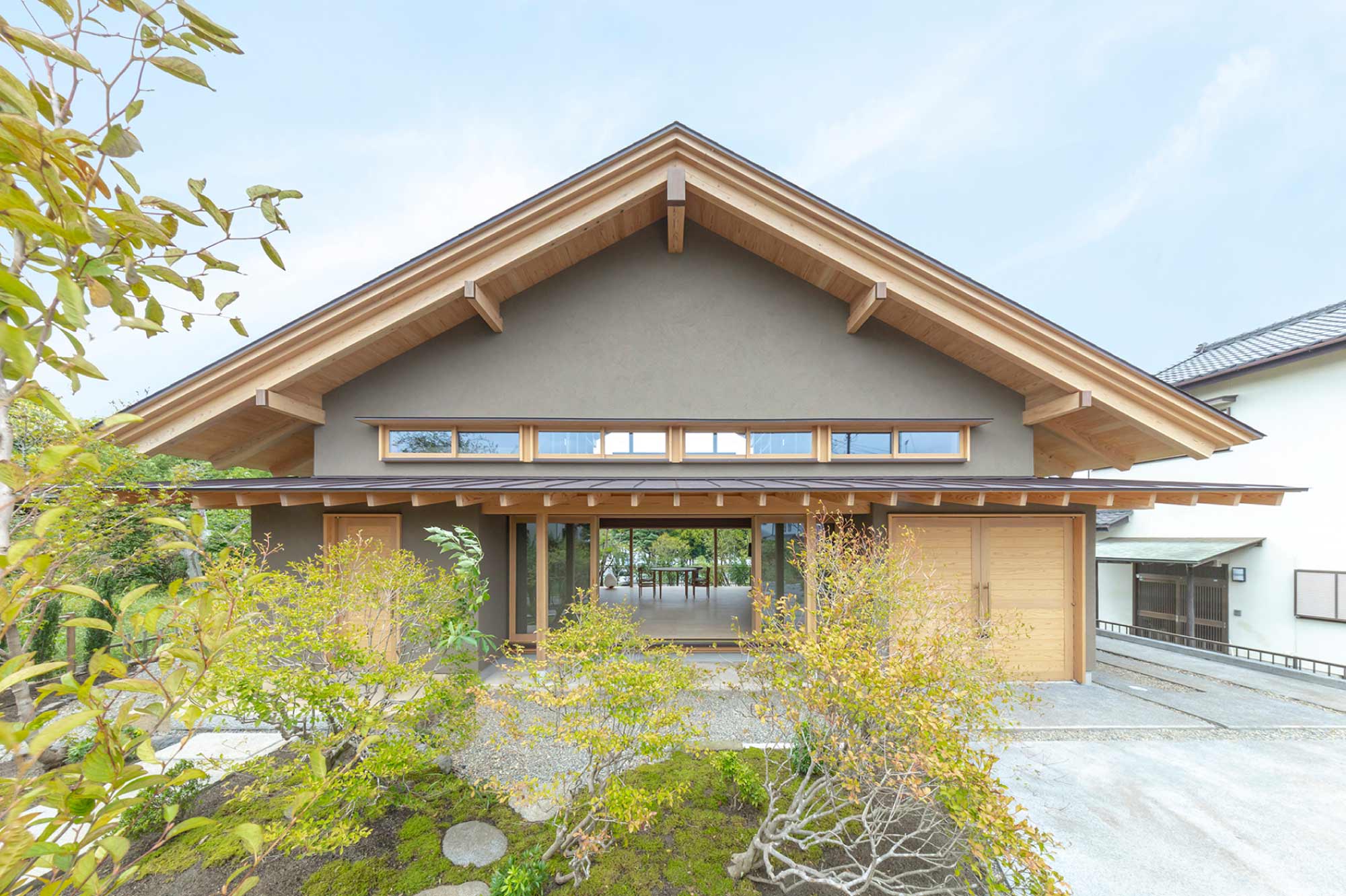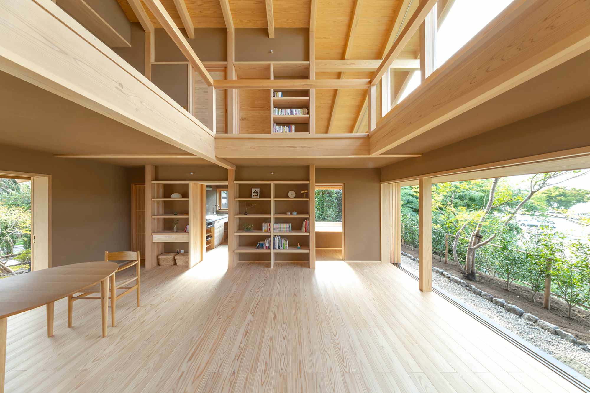 開放感に相応するロングスパンは、大断面の地場の無垢材が支えます。