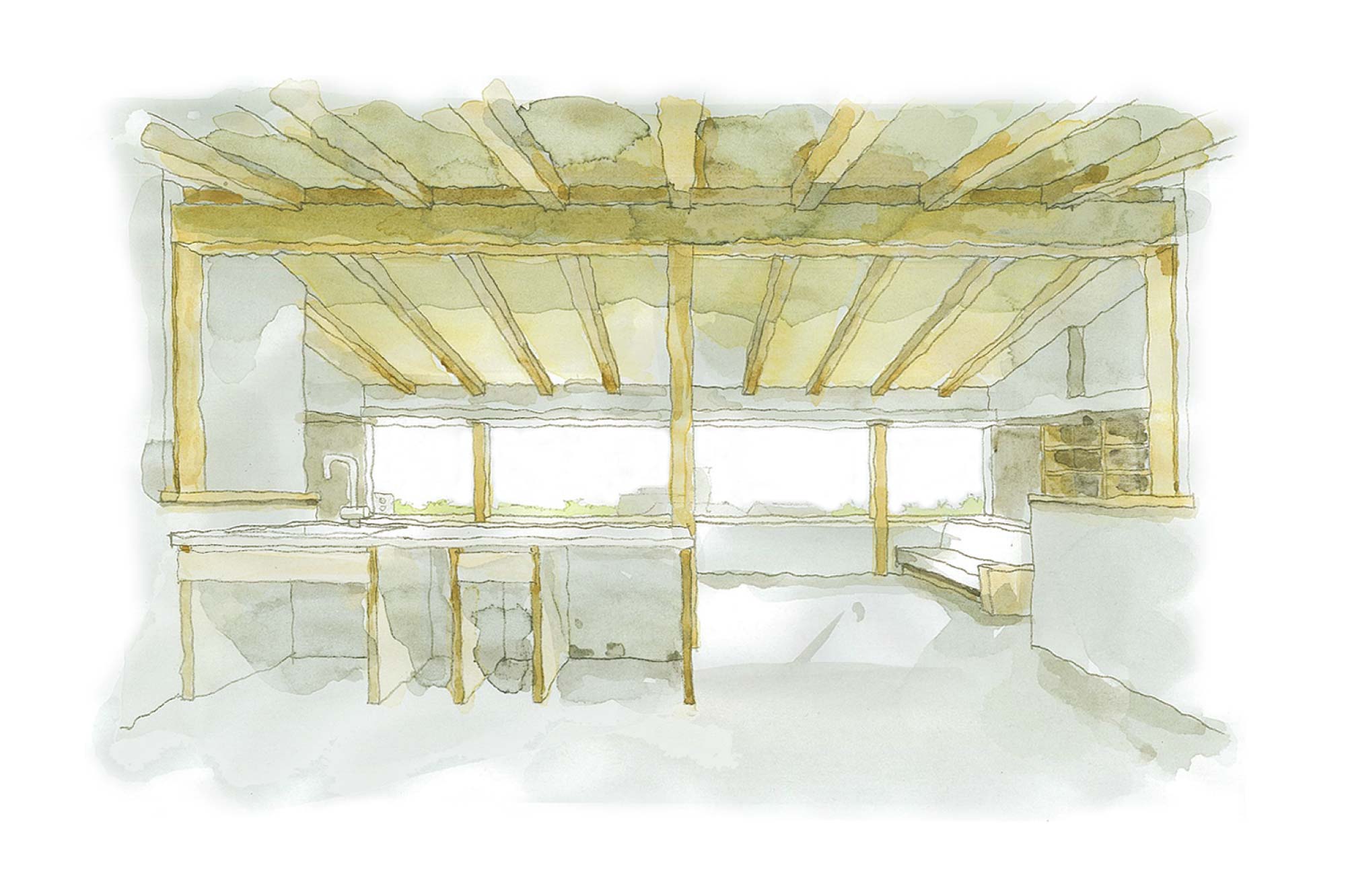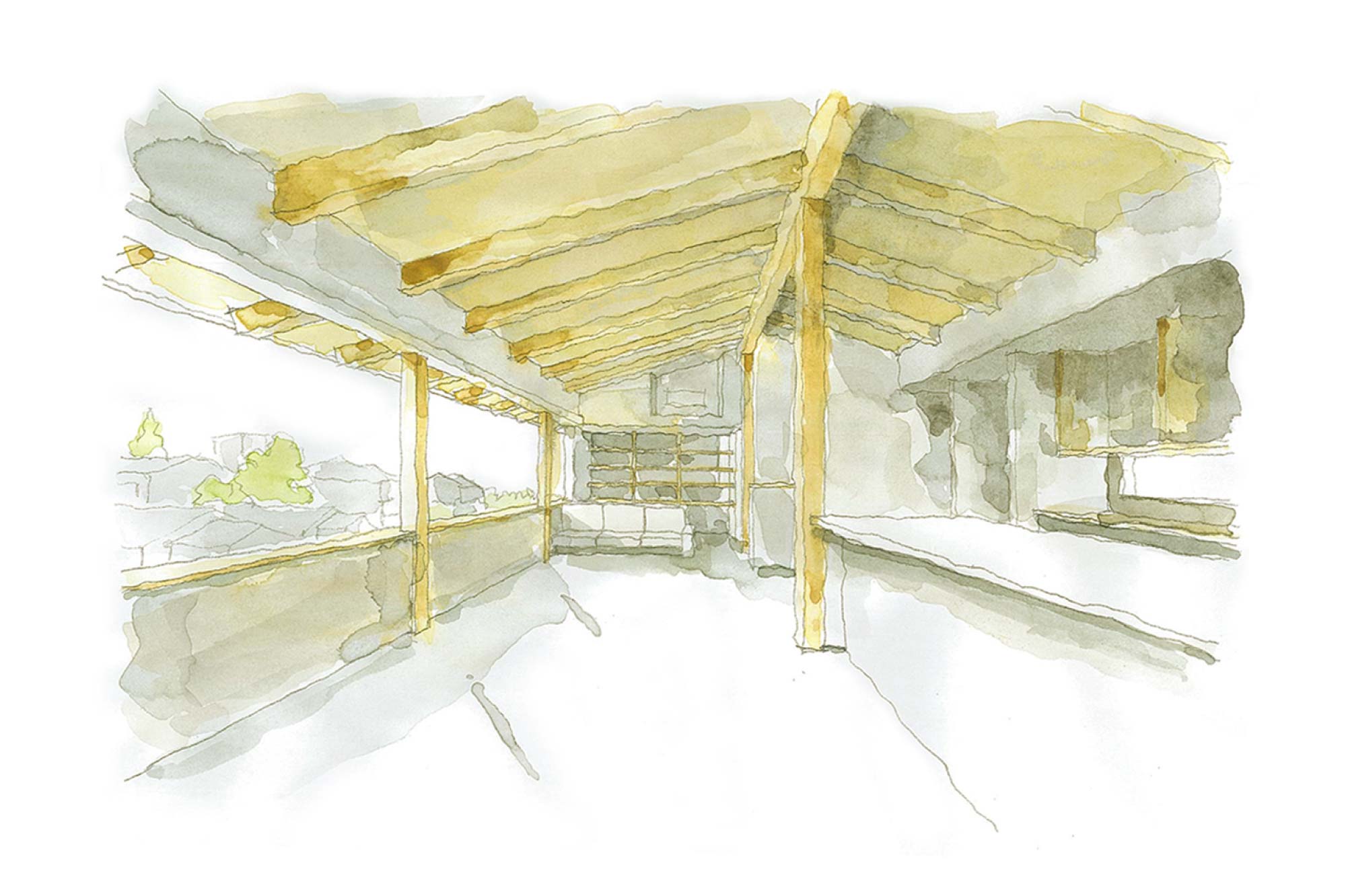 天井付きの半屋外空間には、