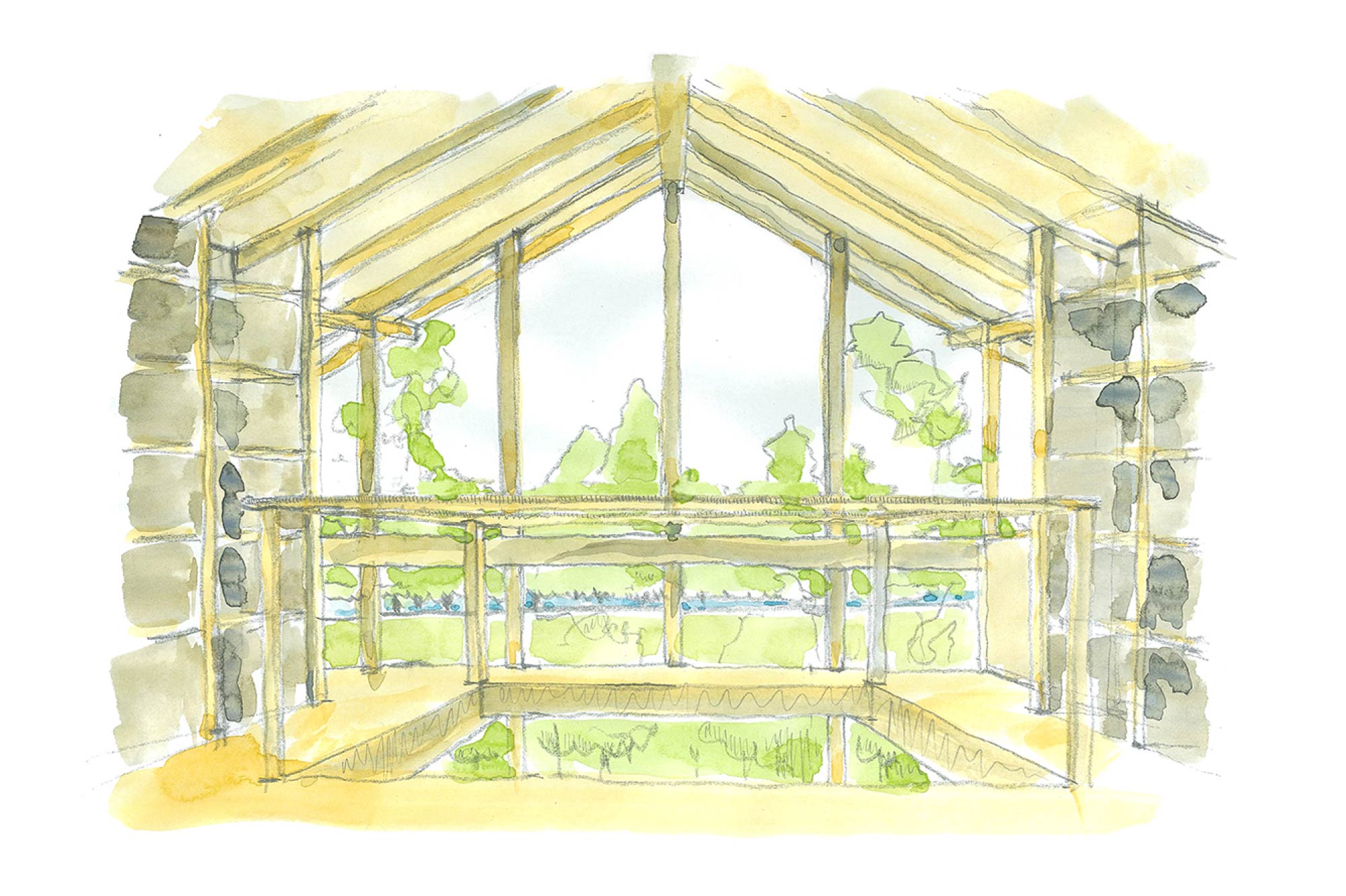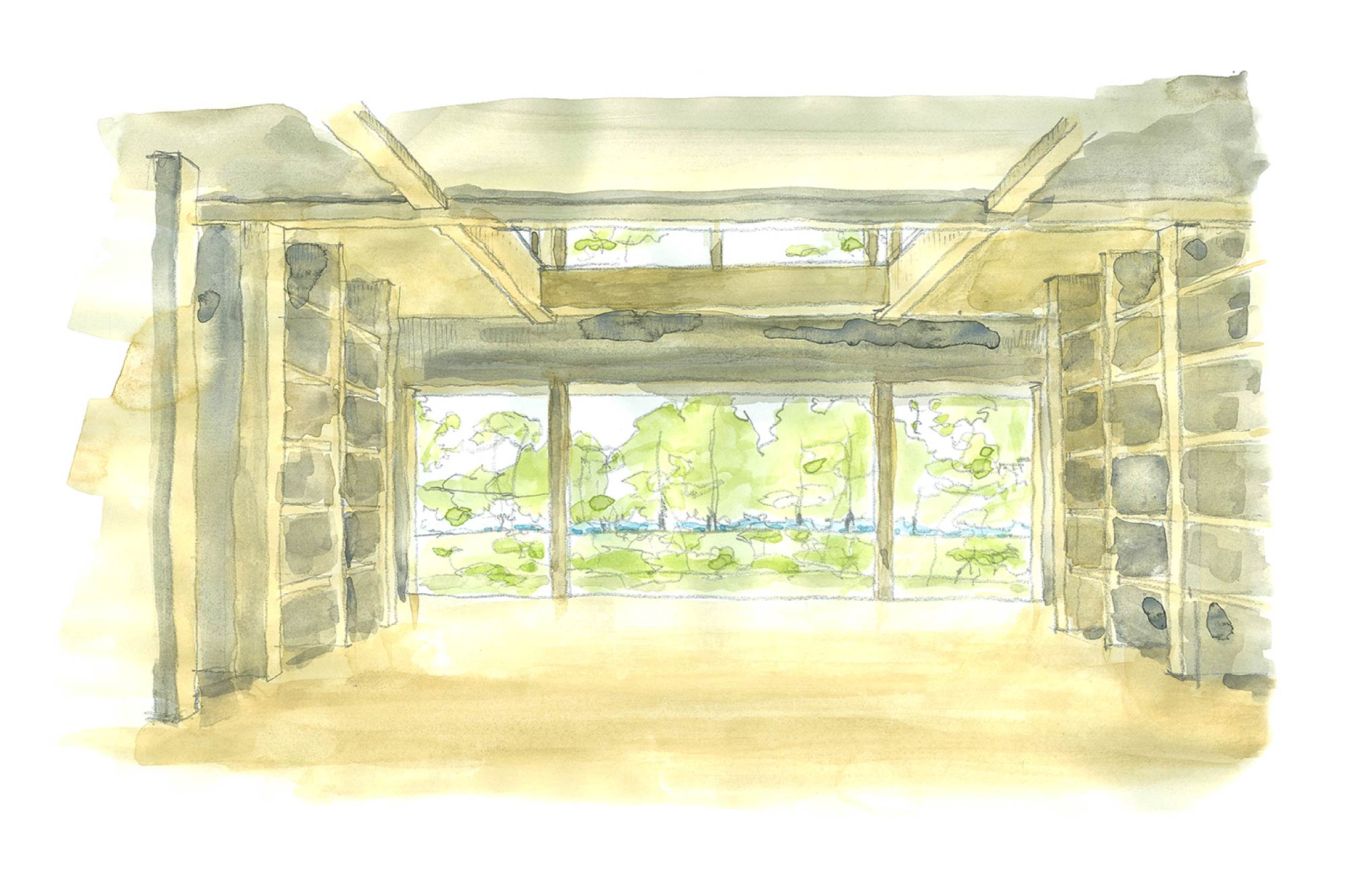千波湖を望む大開口。