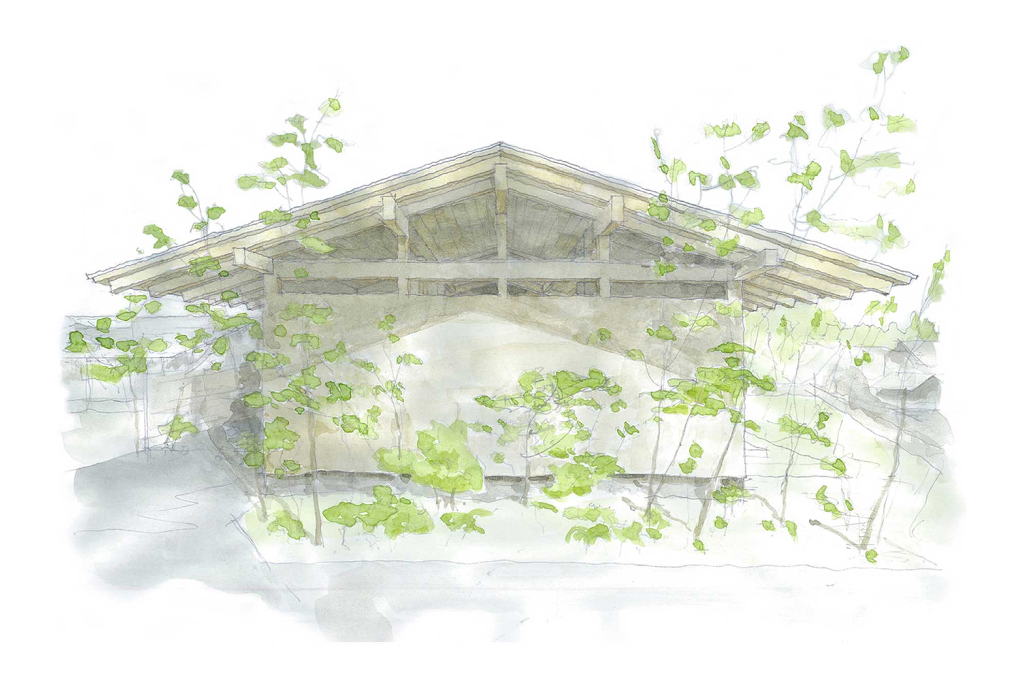大きな窓と深い軒の出。